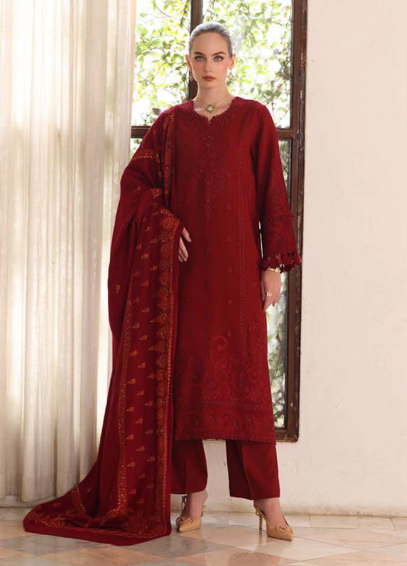 Noor by Saadia Asad Unstitched Linen Pashmina Shawl Embroidered Suits 3 Piece NSA25PW D5-Ember - Casual Collection