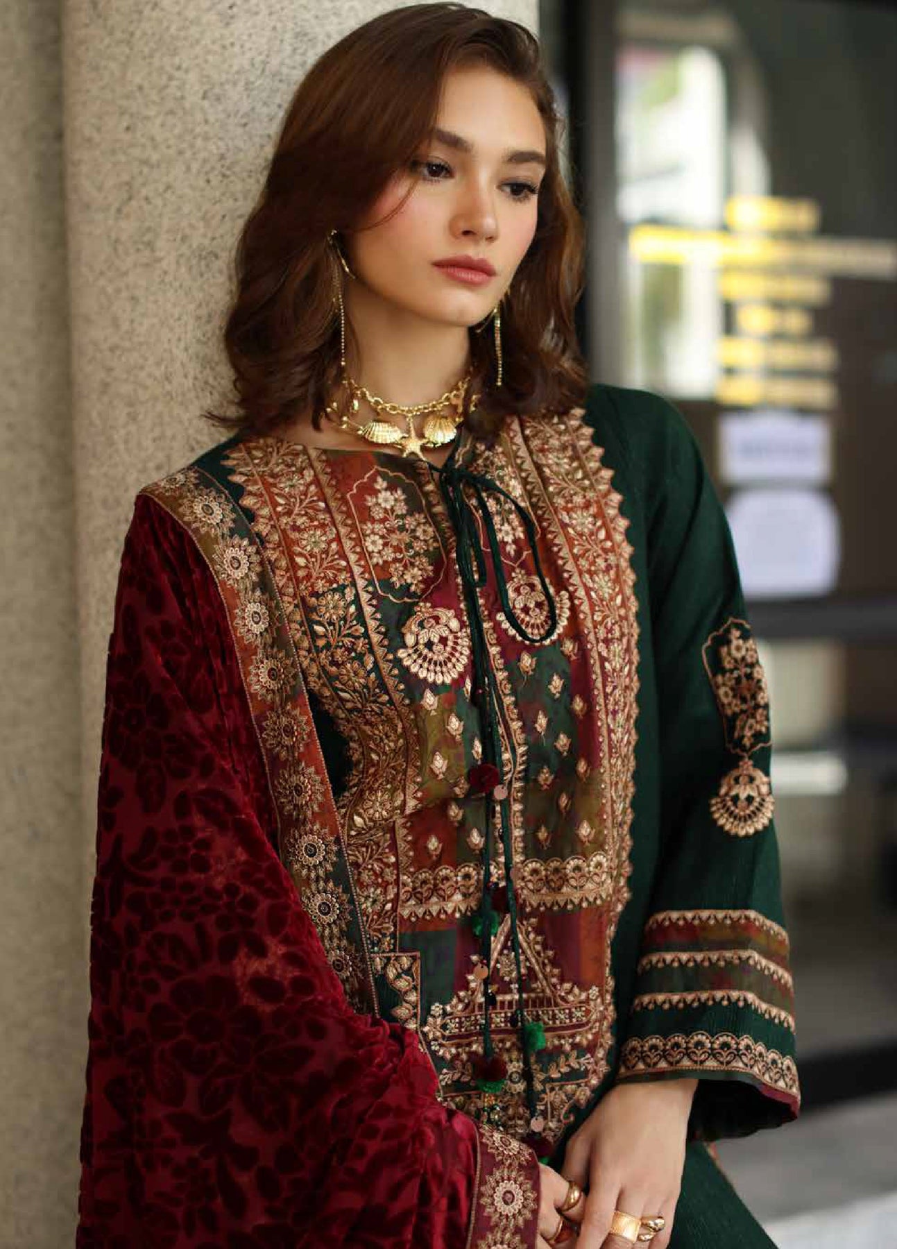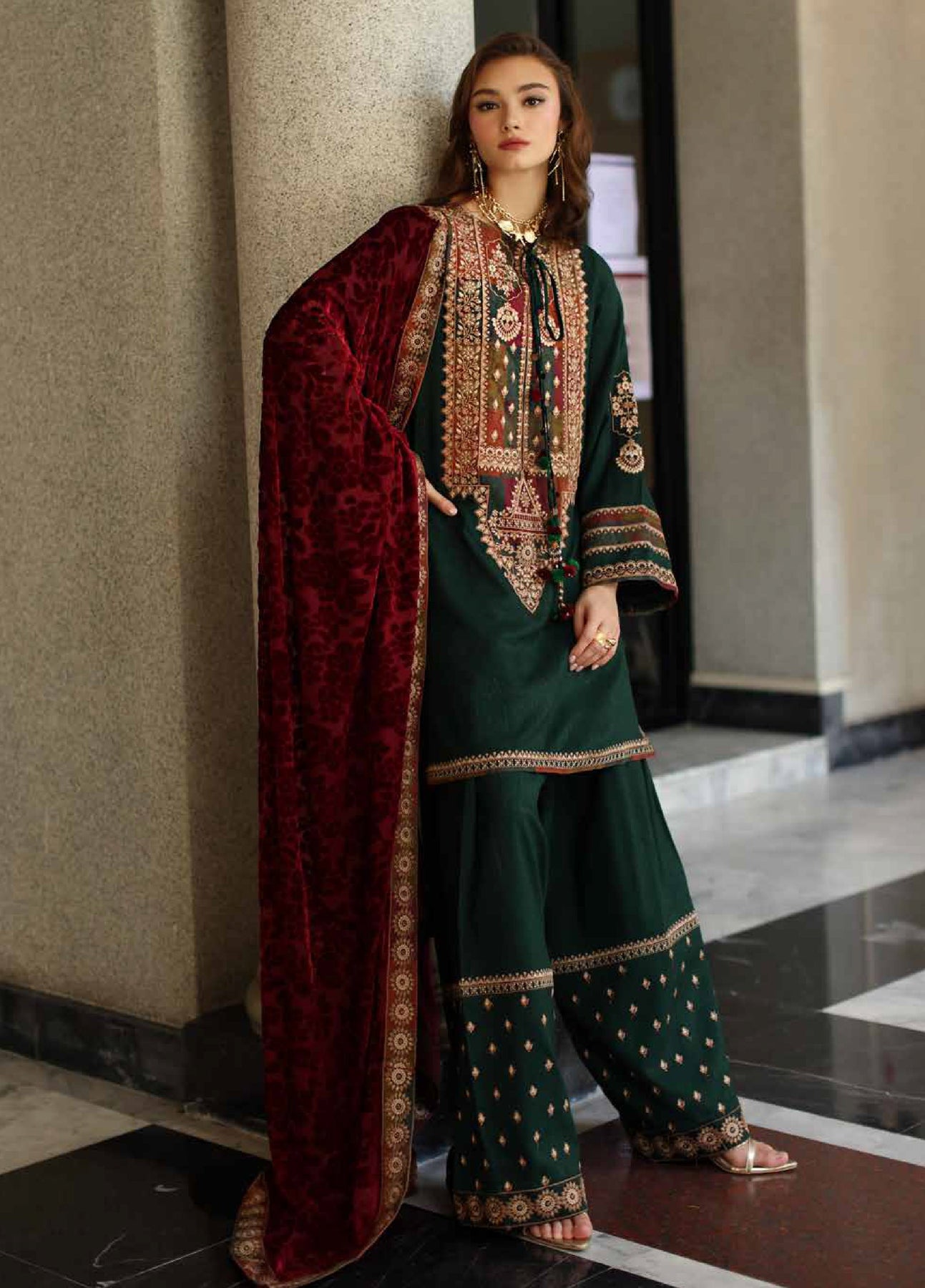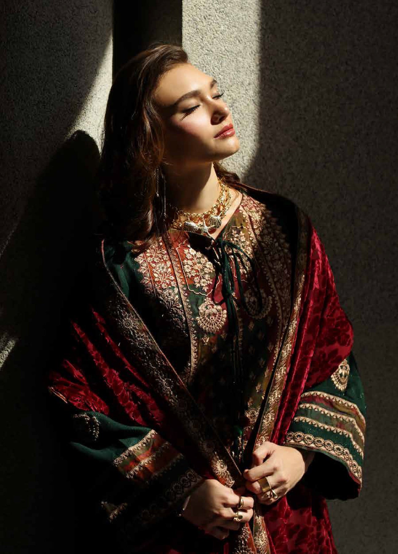 Poshima by Charizma Unstitched Peach Leather Embroidered Suit with Velvet Shawl 3 Piece CRZ25LW PSW5-17 - Winter Collection