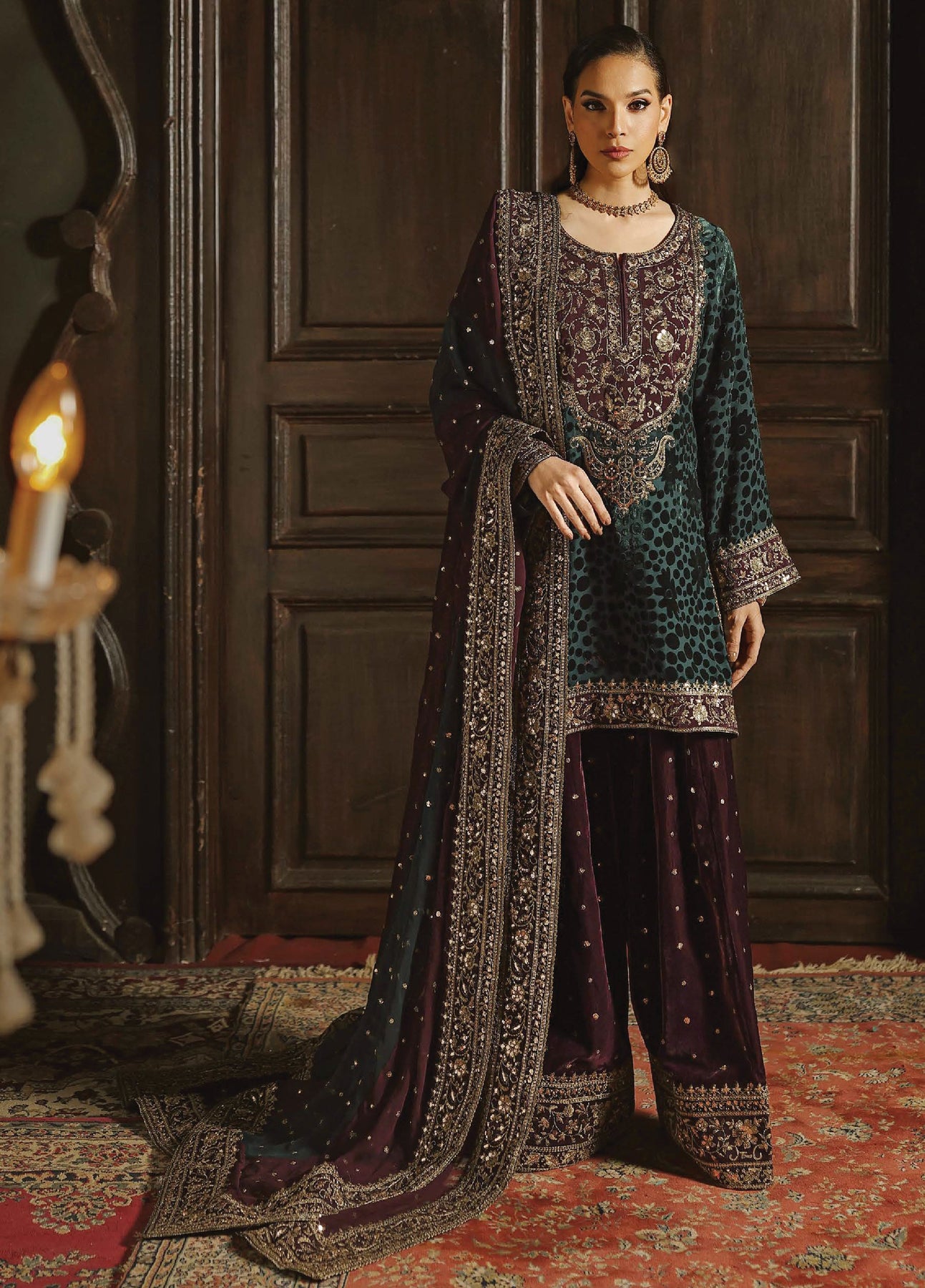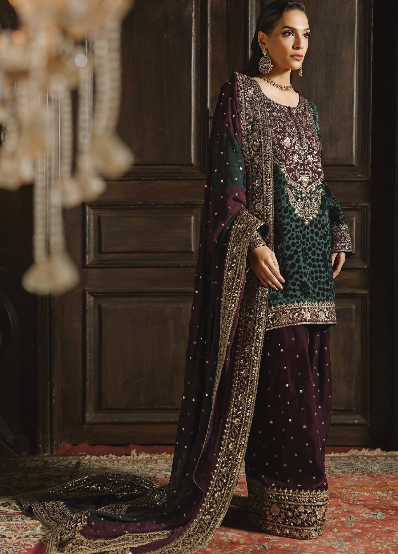 • Embroidered Dyed Velvet Trouser – 2.50 Meter
