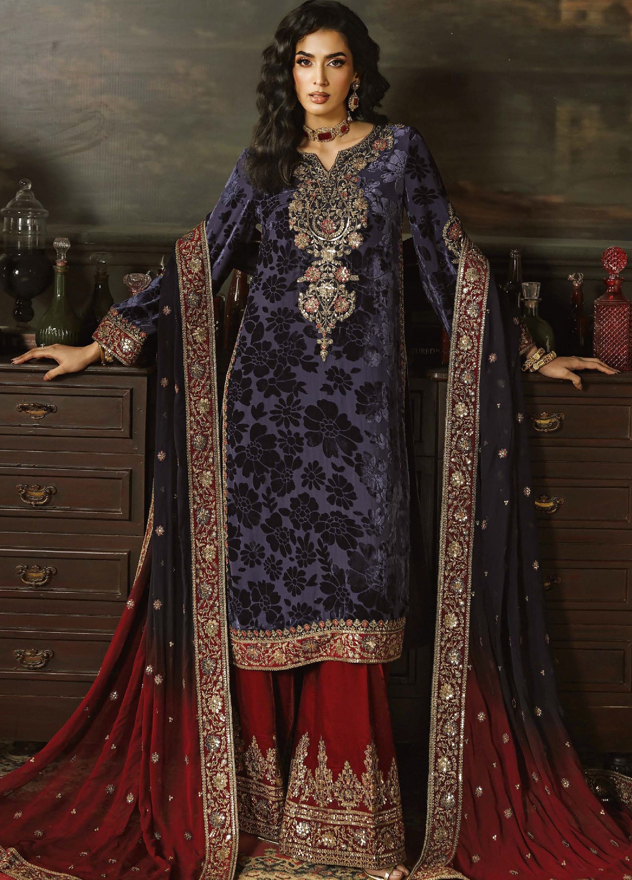 Signora by Charizma Unstitched Velvet Embroidered Suits 3 Piece CRZ25SV CVT5-11 - Festive Collection