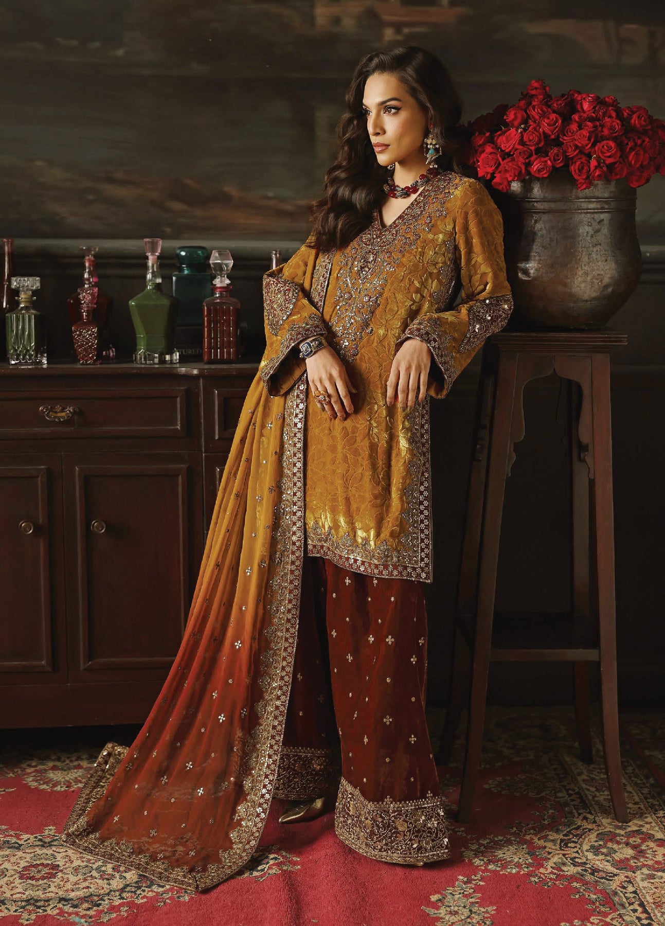• Embroidered Front, Back, Sleeves, Chok & Dupatta Patti – 16 Meter