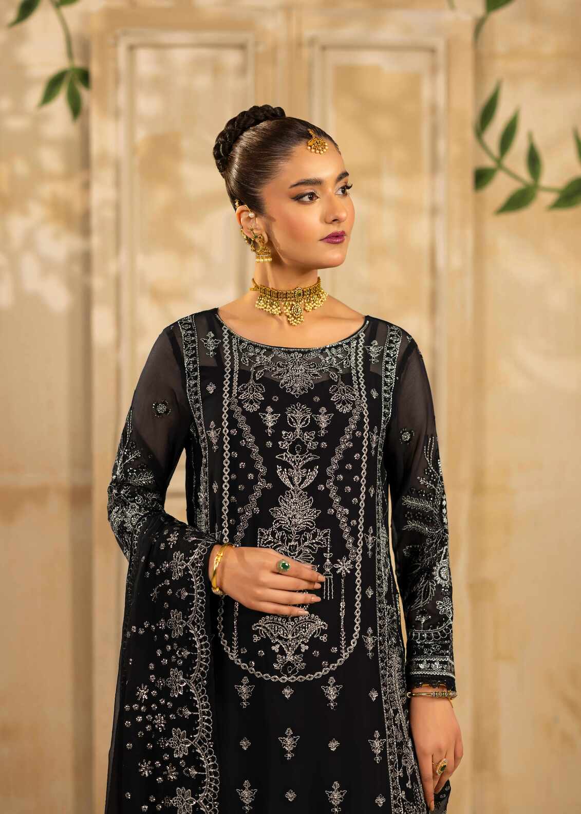 Riwayat by Eileen Pret Embroidered Chiffon 4 Piece Suit C13-Ayzel Black - Festive Collection