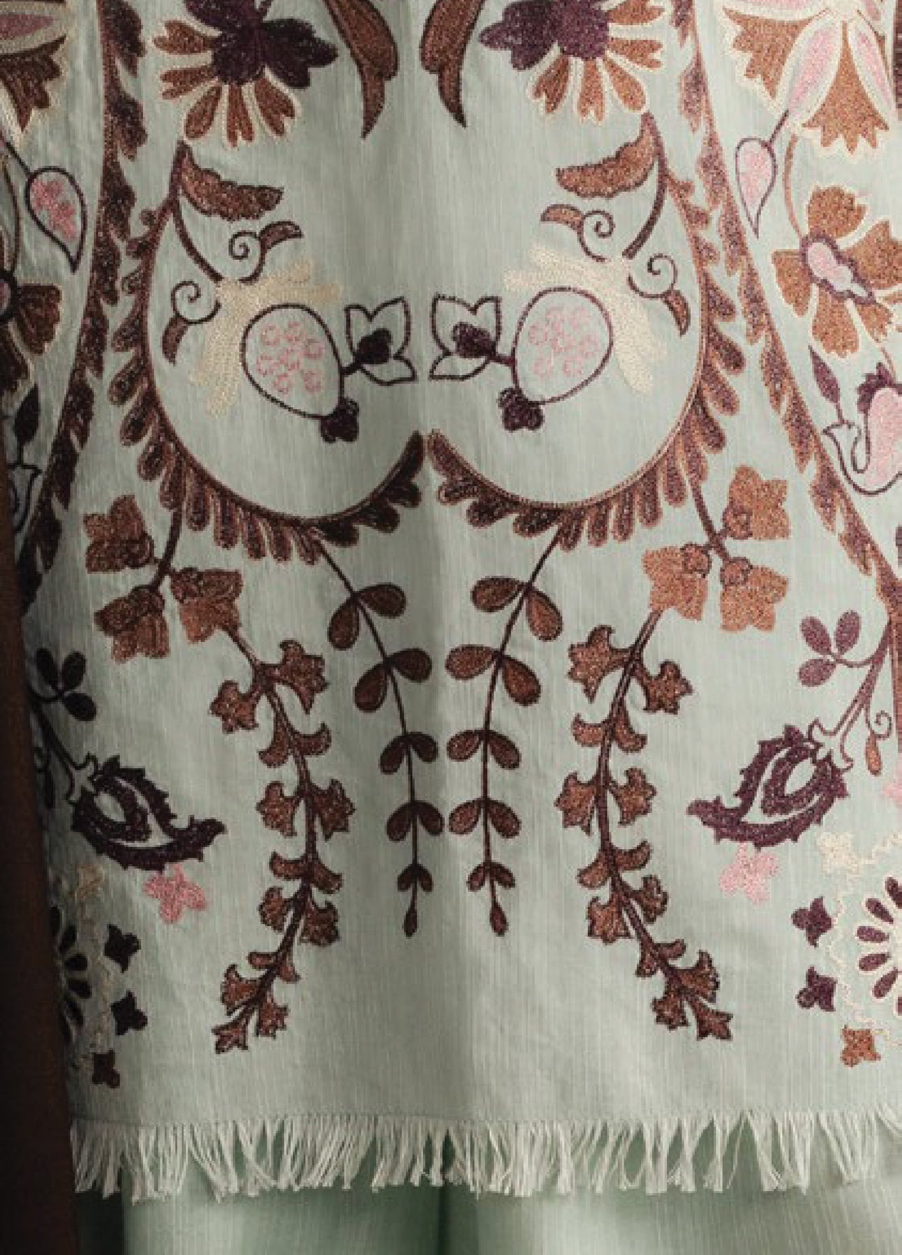 An aqua blue khaddar shirt and trouser paired with a brown shawl, a refreshing yet earthy balance made for the winter season.
