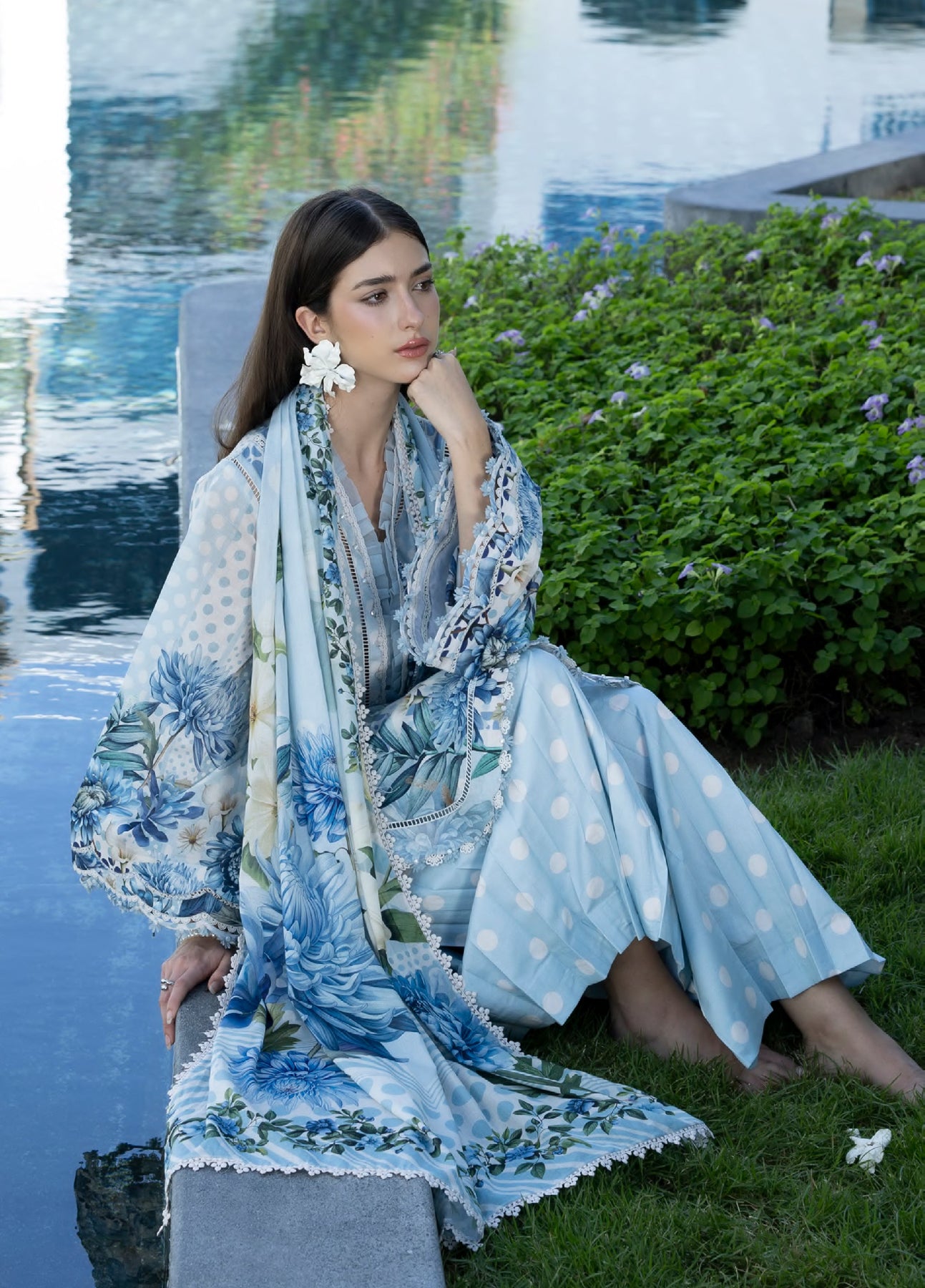 Santorini by Elaf Unstitched Lawn Printed 3 Piece Suit EL26US EPN-01A OCEAN PETALS - Summer Collection