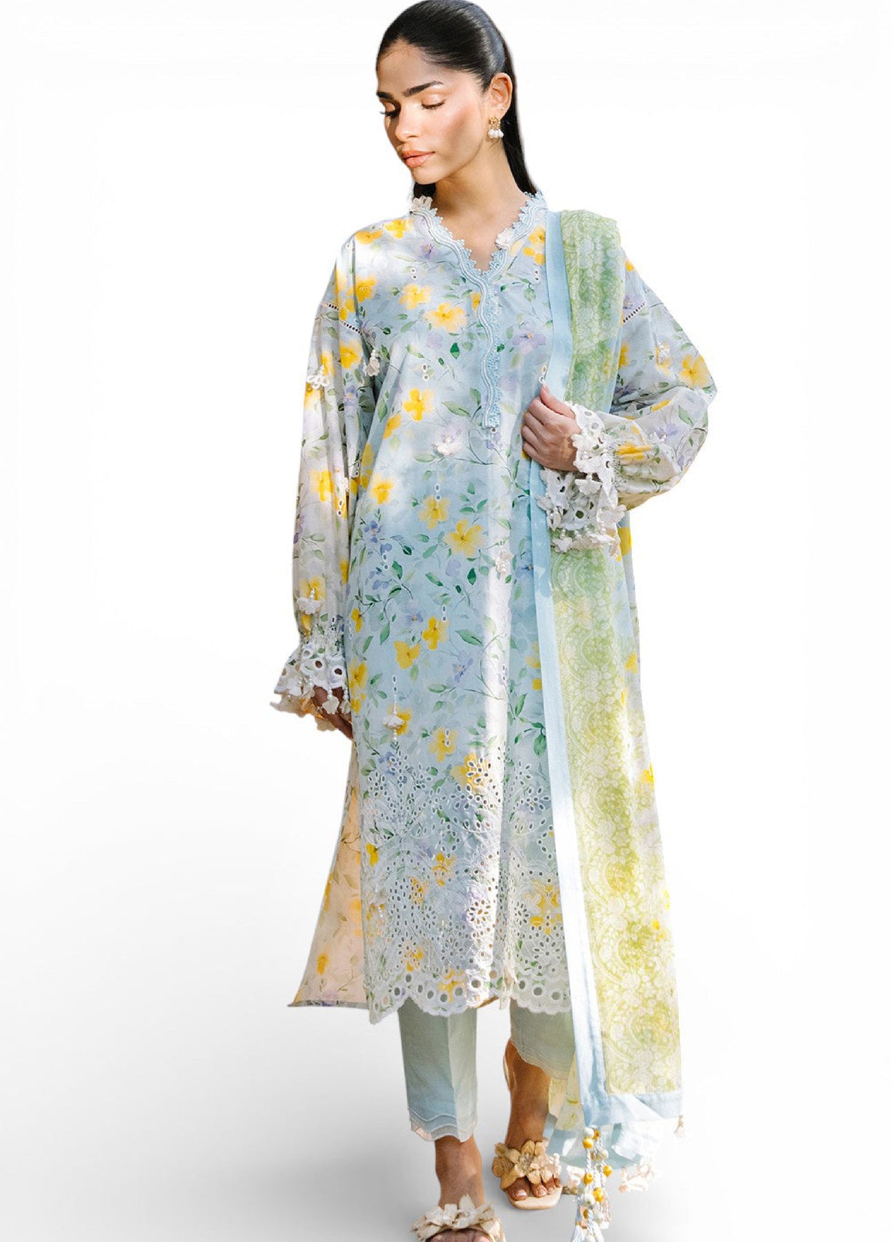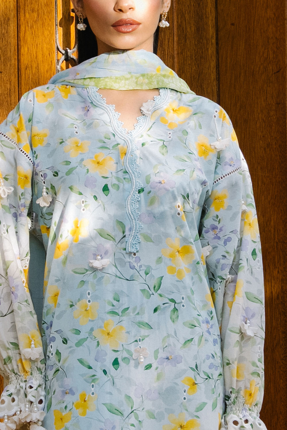 • Embroidered Printed Lawn Shirt Front & Sleeves with Printed Lawn Back – 2.28 Meters
