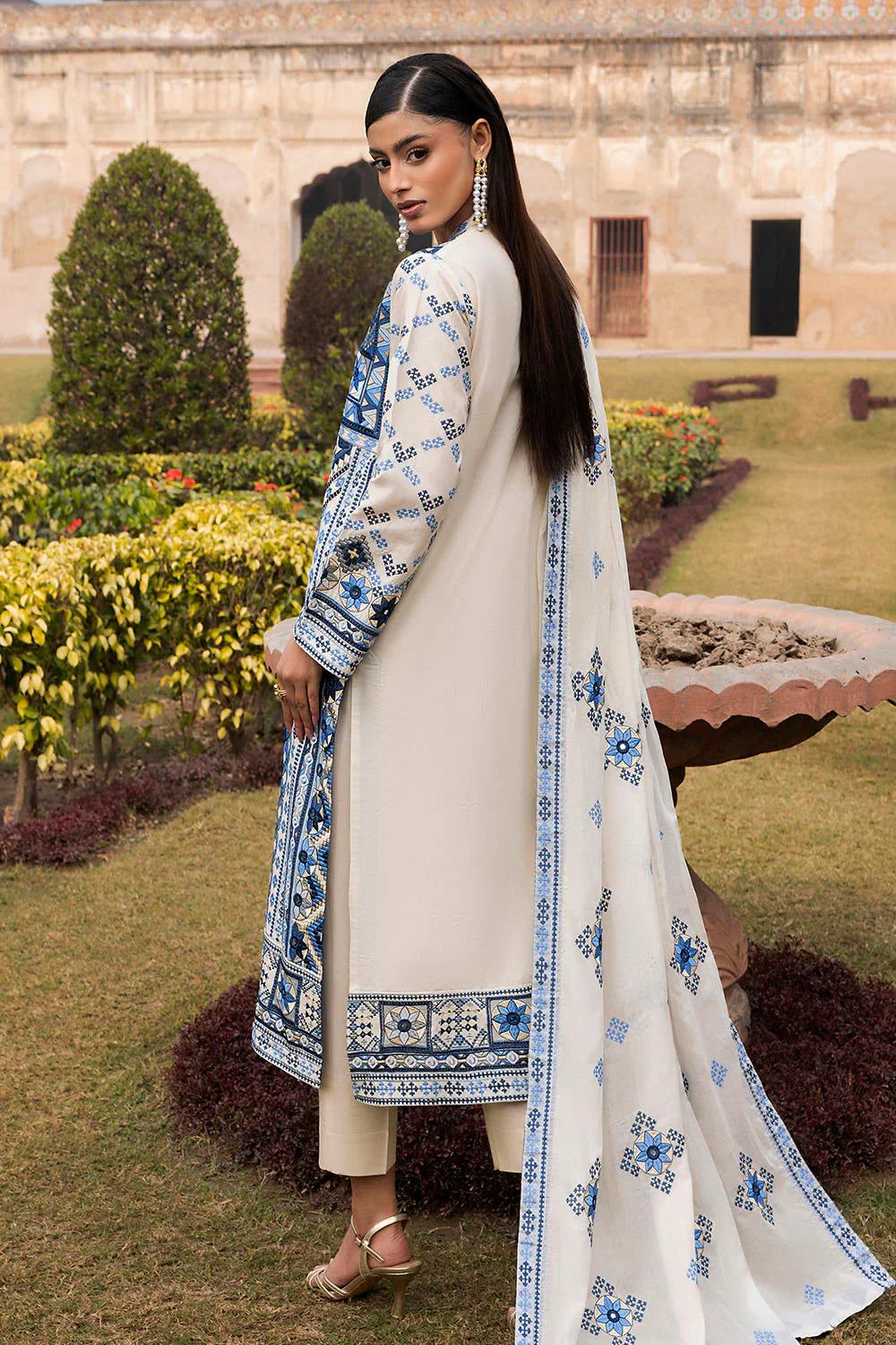 • Jacquard Shirt. Embroidered Neckline & Border for Sleeves – 3.00 Meters