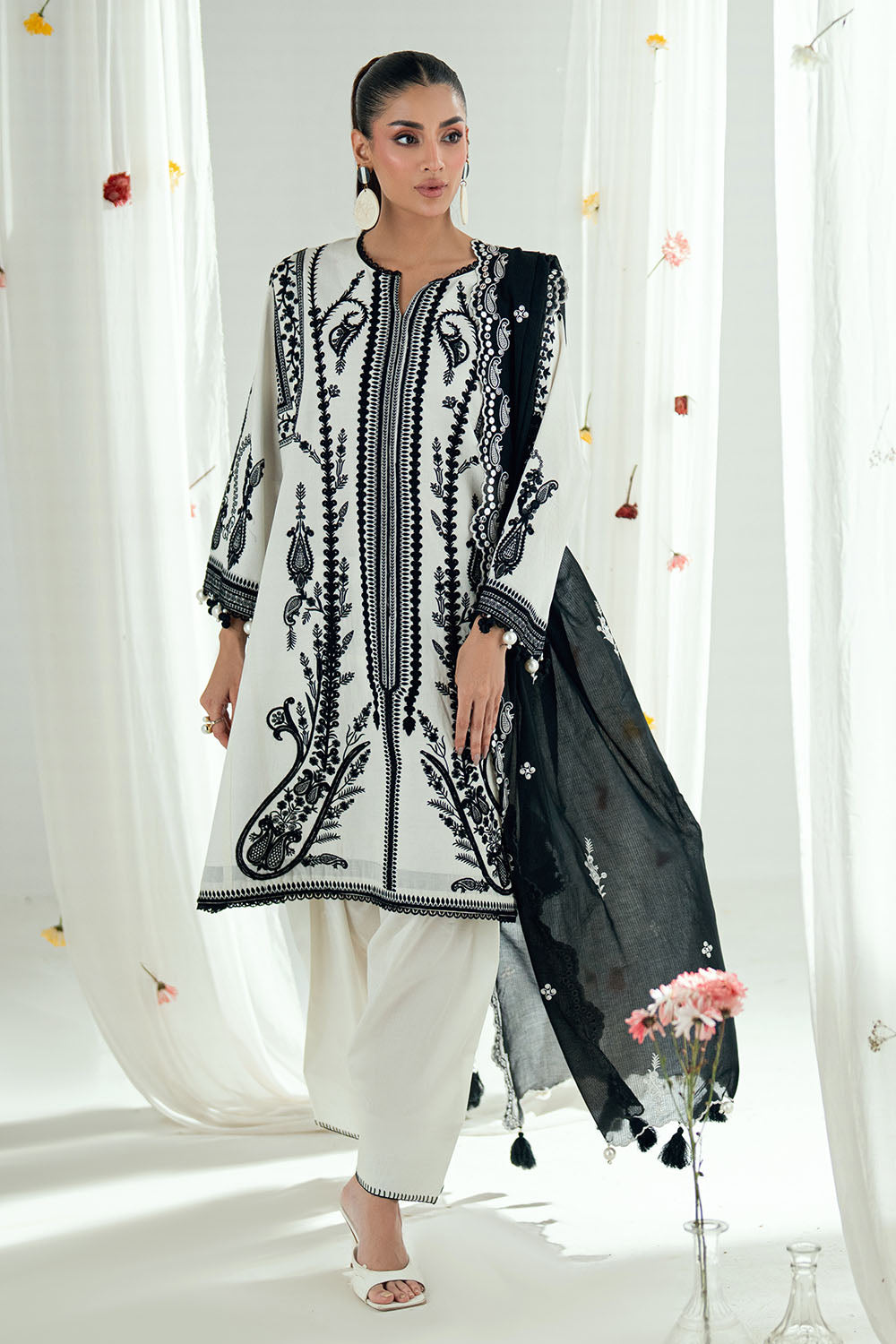 • Embroidered Lawn Shirt Front, Back & Sleeves with Embroidered Borders for Front, Back & Lace for Shirt – 2.55 Meters