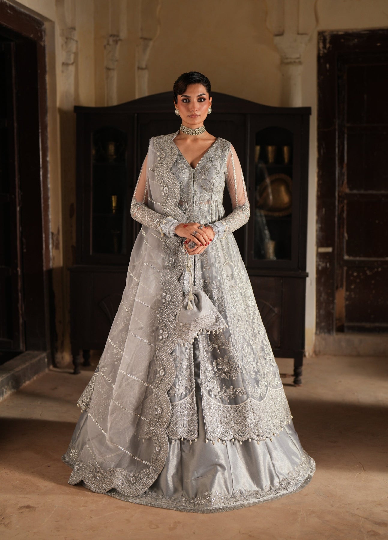 • Resham And Sequin Embroidered Net Front Yoke