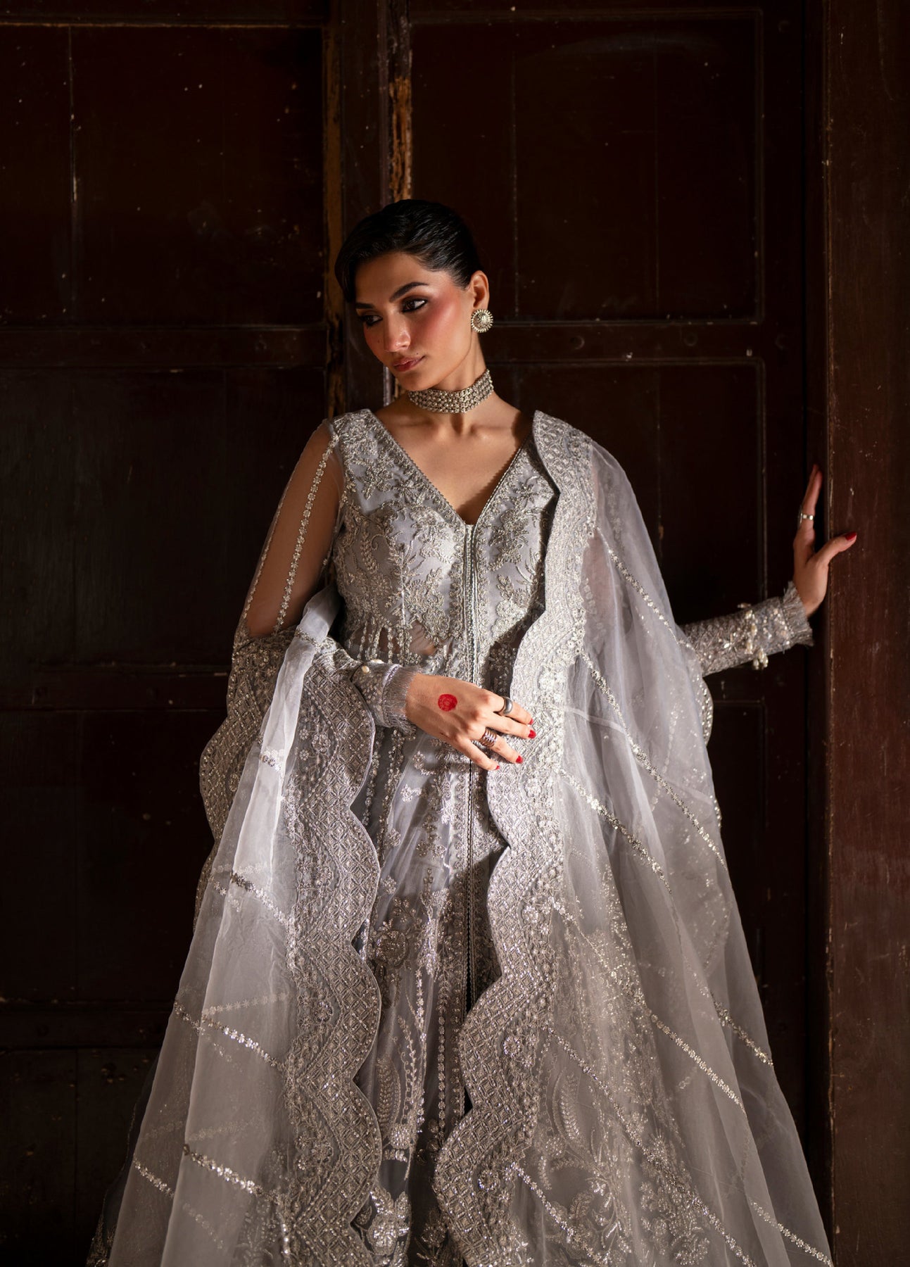 • Resham And Sequin Embroidered Organza Dupatta