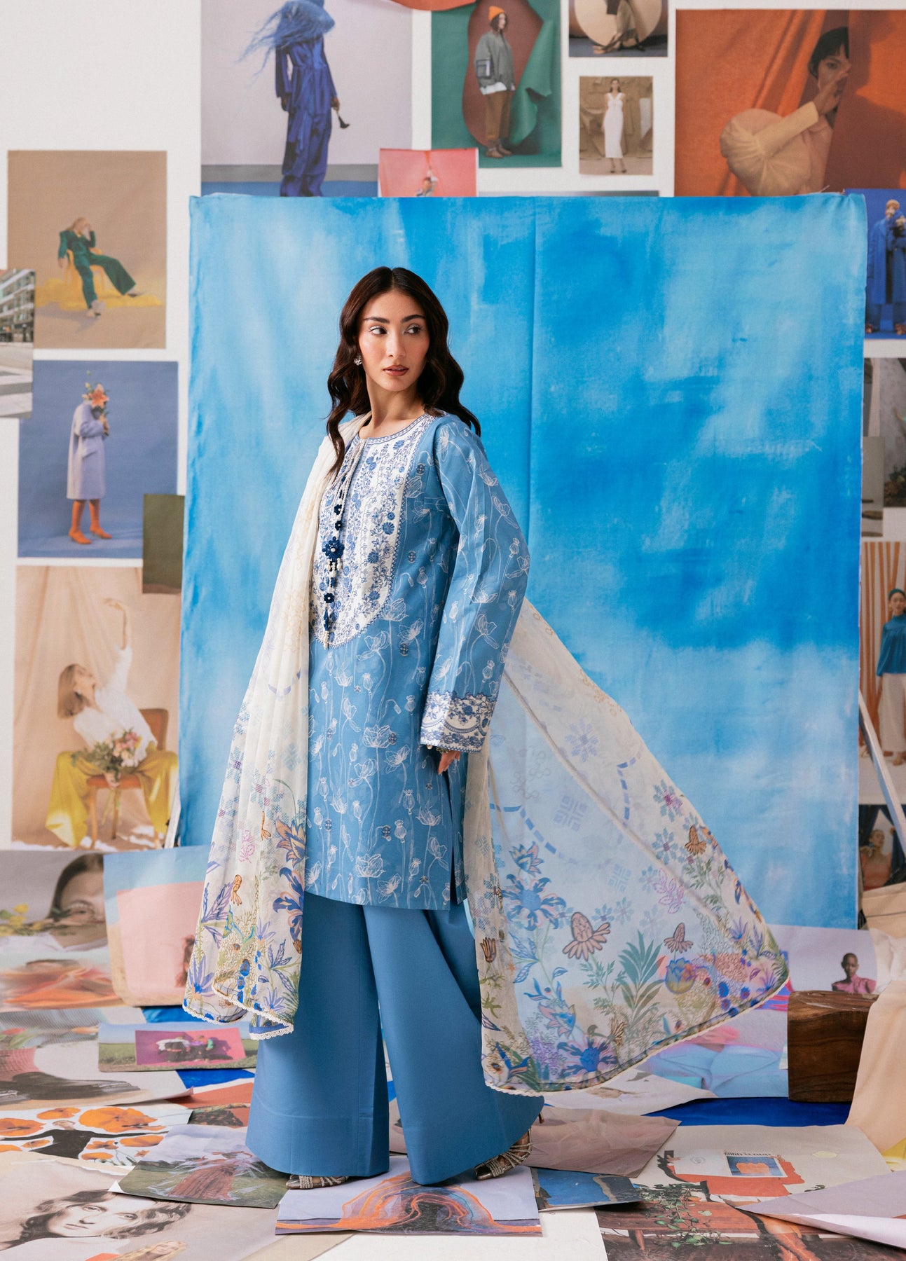 Zync by Florent Unstitched Embroidered Printkari Lawn 3 Piece Suit FL26UZP FZ-2B - Summer Collection