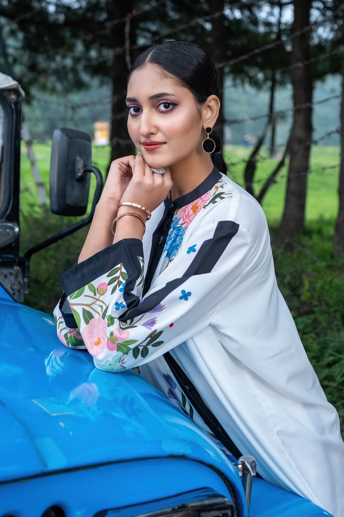A beautifully printed two-piece featuring intricate floral patterns and a relaxed silhouette. The straight-cut shirt and matching trousers offer effortless elegance, perfect for both casual outings and semi-formal occasions.