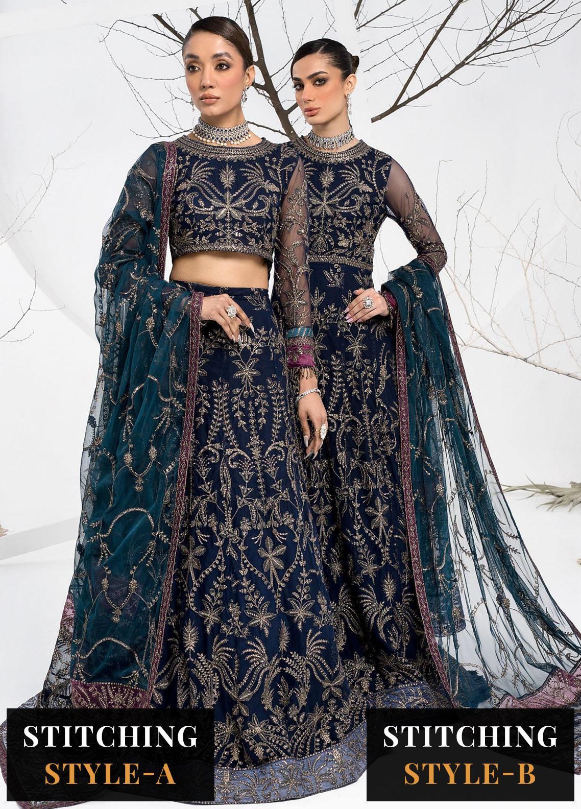 La Celeste By Zarif Embroidered Net Suits Unstitched 3 Piece ZR25UF ZLC 01 Blue Berry - Luxury Formal Collection