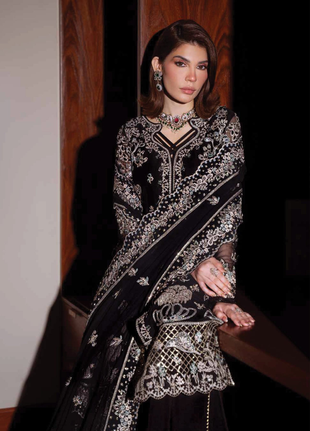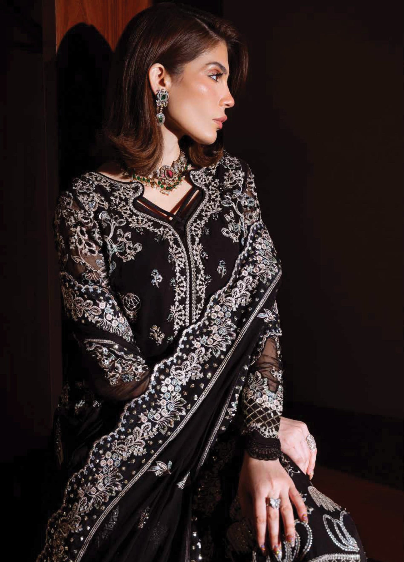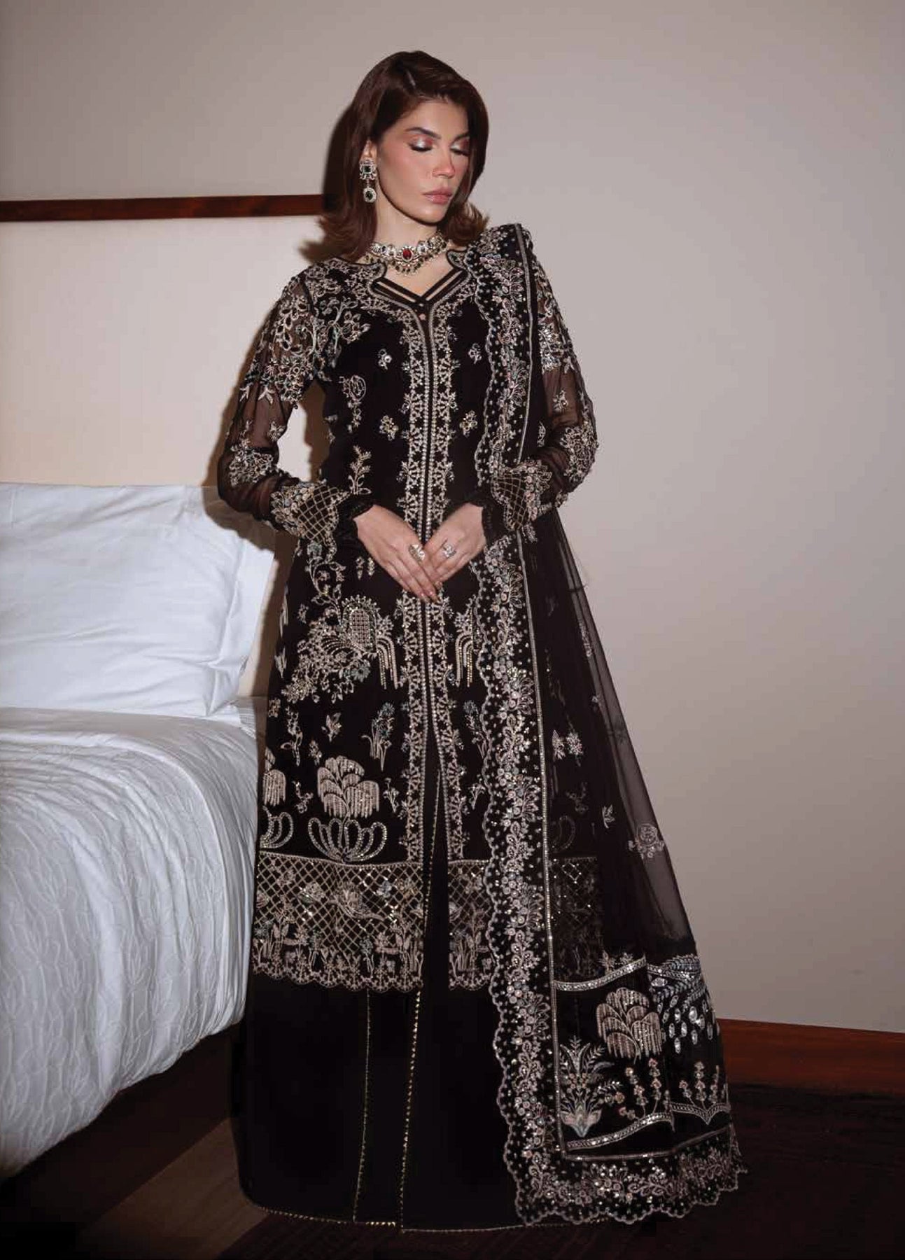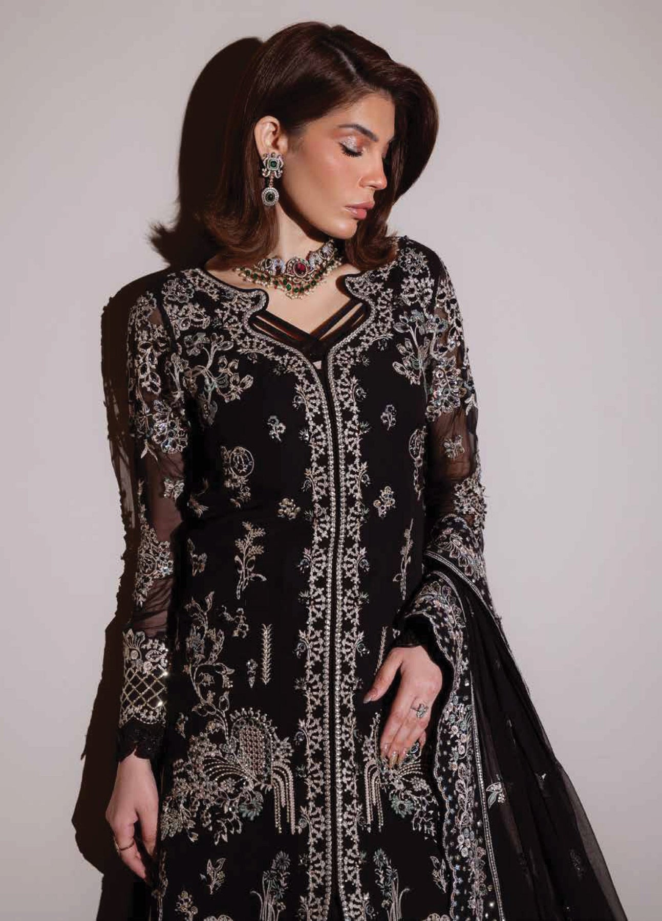 • Embroidered Chiffon Sleeves with Hand Embellishment