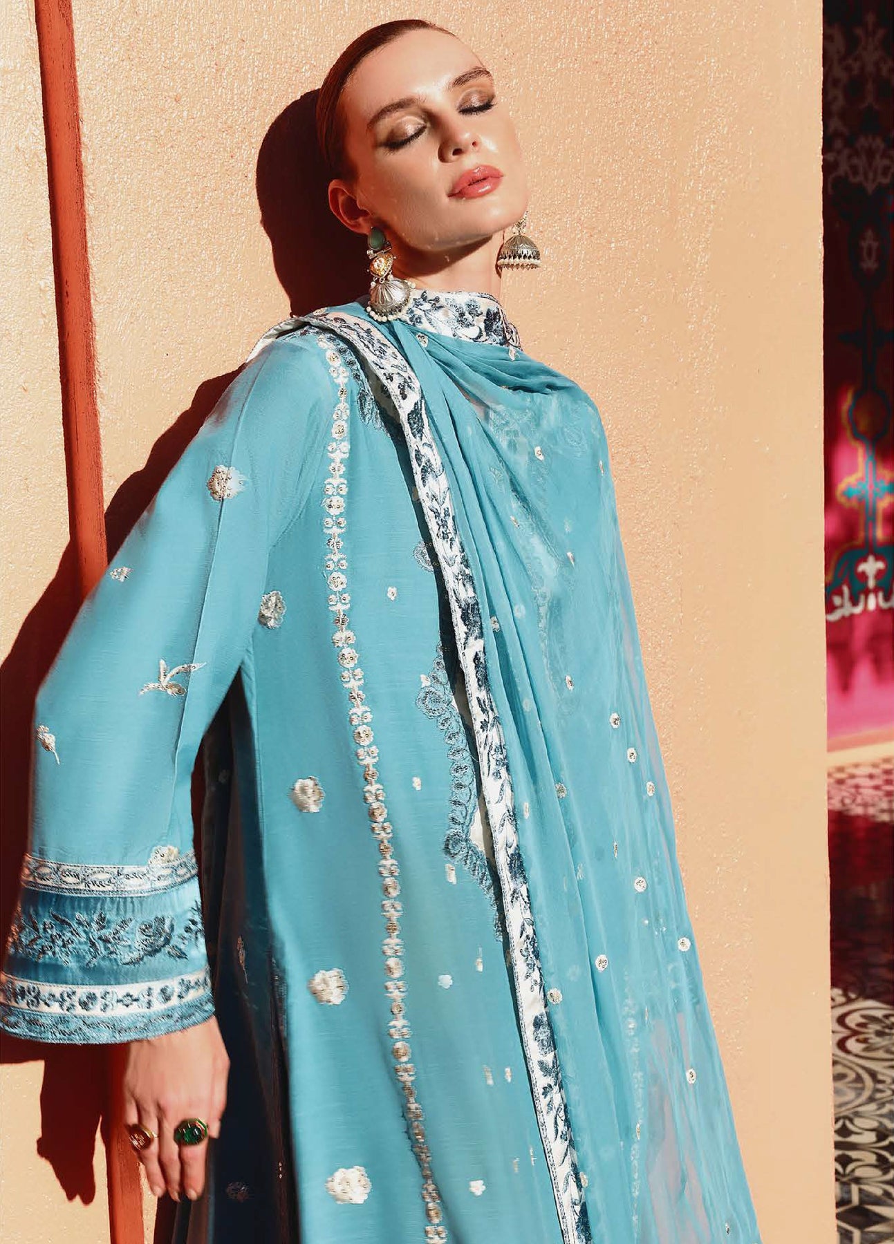 • Embroidered, Sequined Sleeves & Trouser Lace (Silk)