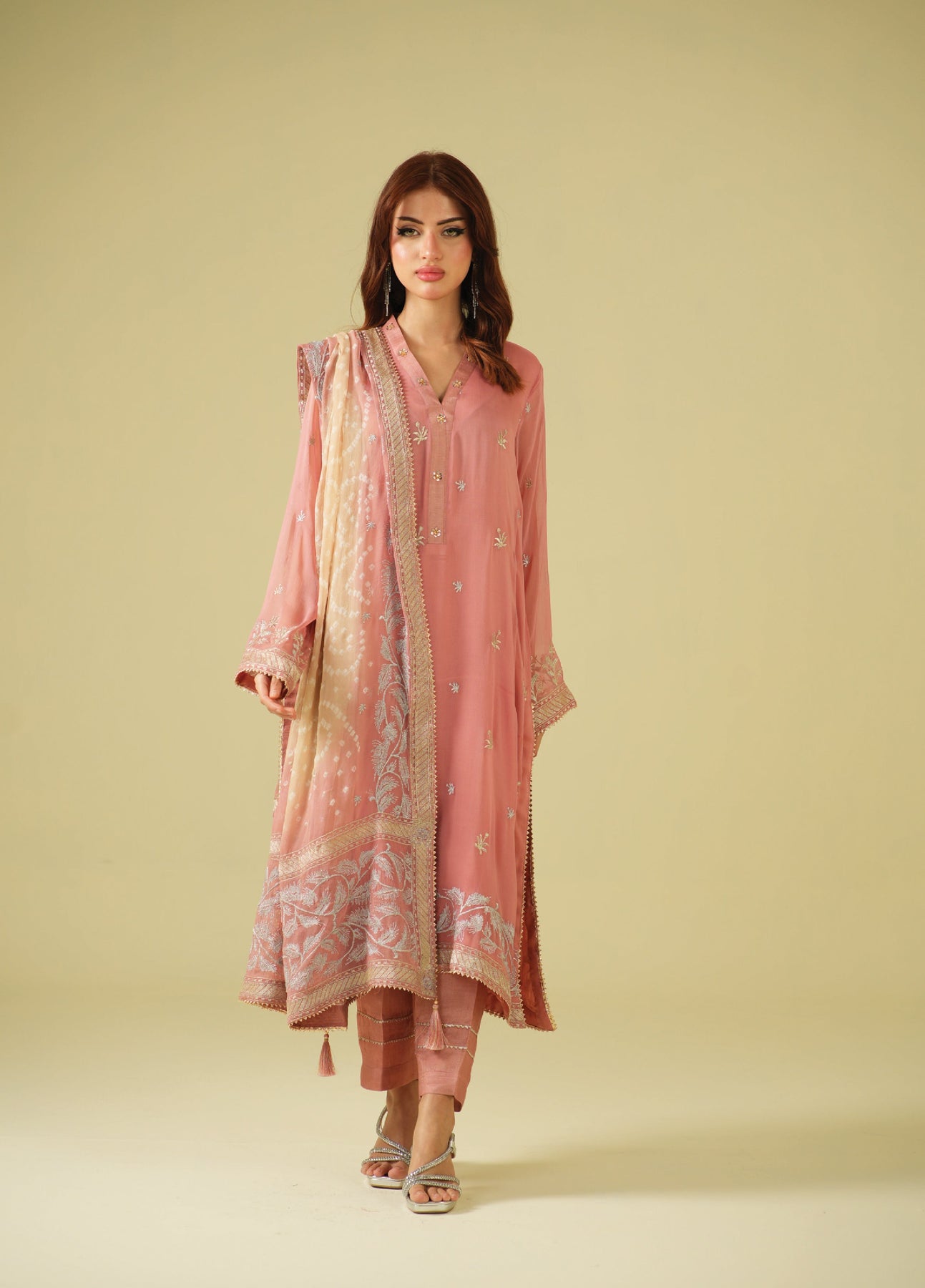 Satrang by Zouj Unstitched Chunri Chiffon Embroidered Suits 3 Piece ZJ25SC ZJCH-0031 Peach - Festive Collection