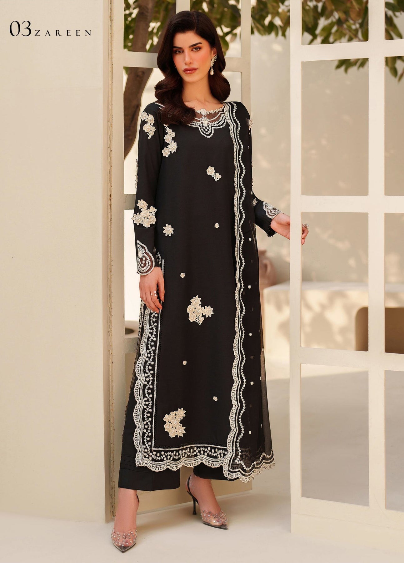 Tabeer by Zarif Unstitched Silk Embroidered 3 Piece Suit ZR26UT ZE-TS-03 ZAREEN - Winter Collection
