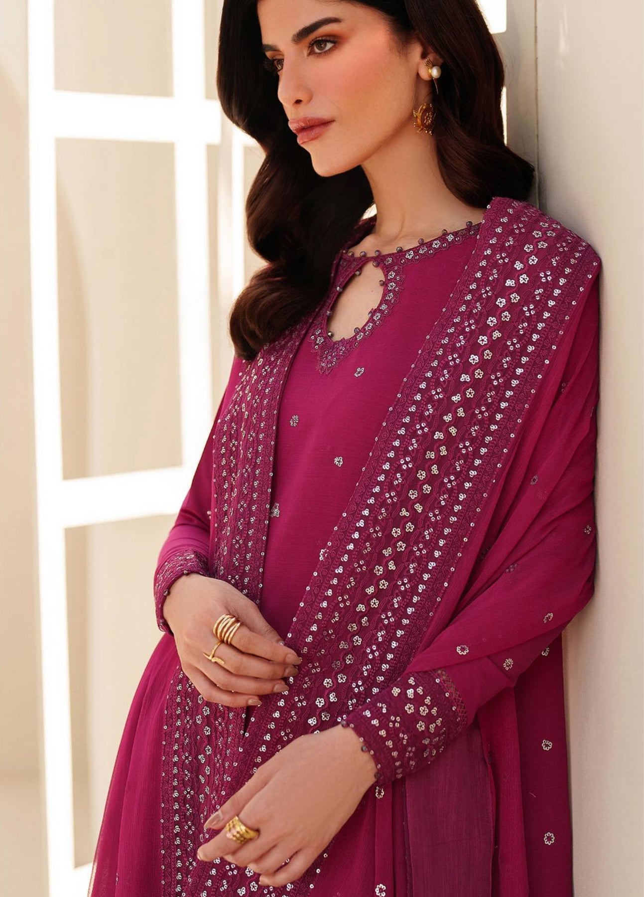 • Sequins Embroidered Chiffon Dupatta