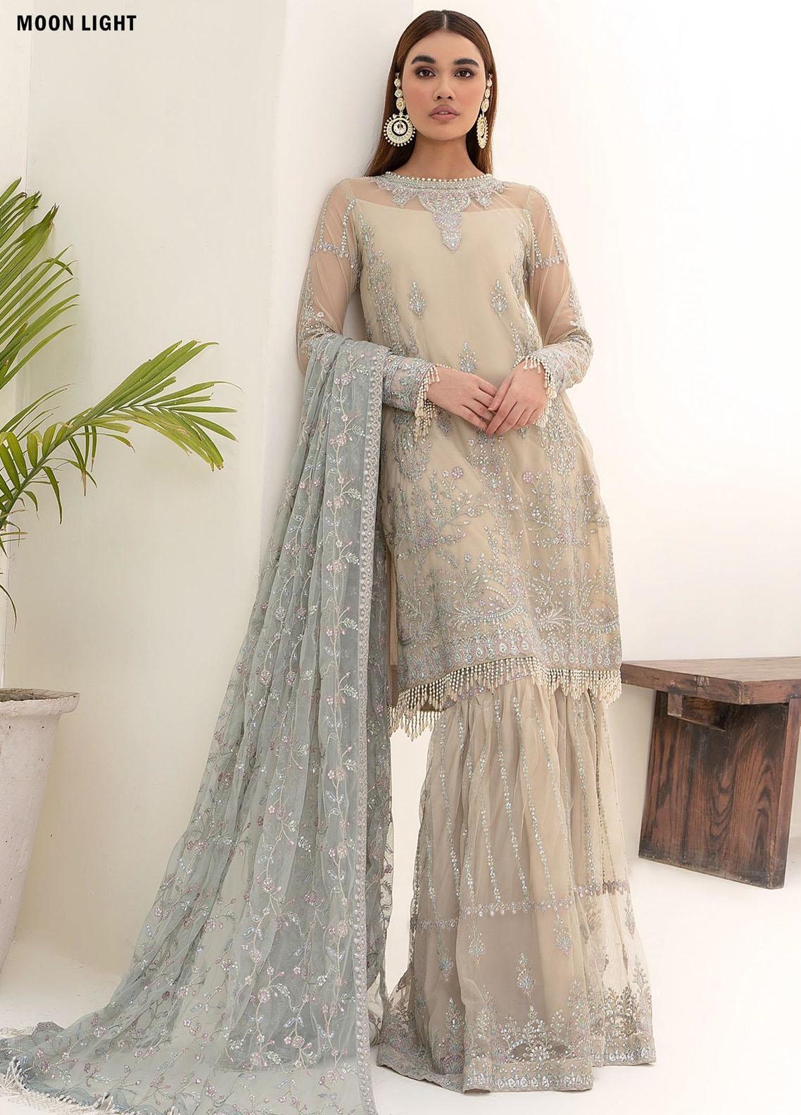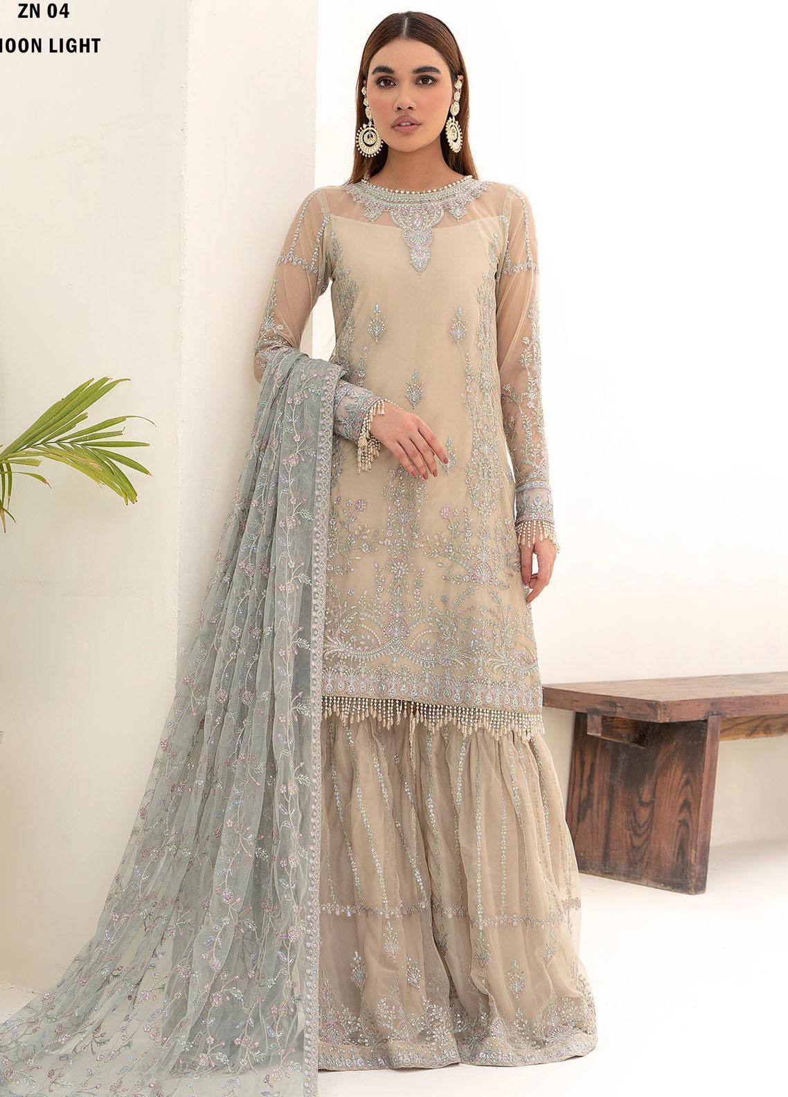 Nazneen By Zarif Embroidered Net Suits Unstitched 4 Piece ZR25UF ZN 04 Moon Light - Luxury Formal Collection