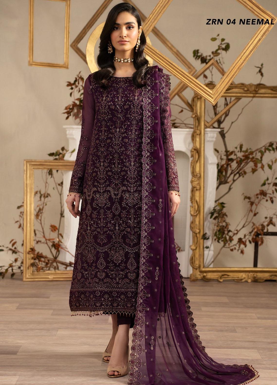 Naqsh By Zarif Embroidered Chiffon Suits Unstitched 3 Piece ZR25UF ZRN 04 Neemal - Festive Collection